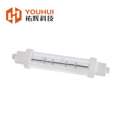 Lámparas infrarrojas de cuarzo transparente, emisores halógenos R7S IR para aplicaciones de calor. Calentadores infrarrojos de tubo de vidrio con base R7S transparente para secado de pintura y otros procesos de calentamiento industrial.